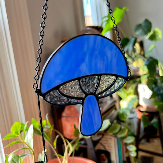 Mondo Stained Glass Mushroom ~ sky blues + clear *discounted*