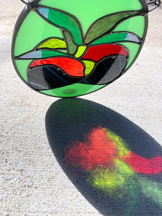 Chocolate Strawberry & Mint Stained Glass Panel ~ 6" x 9"
